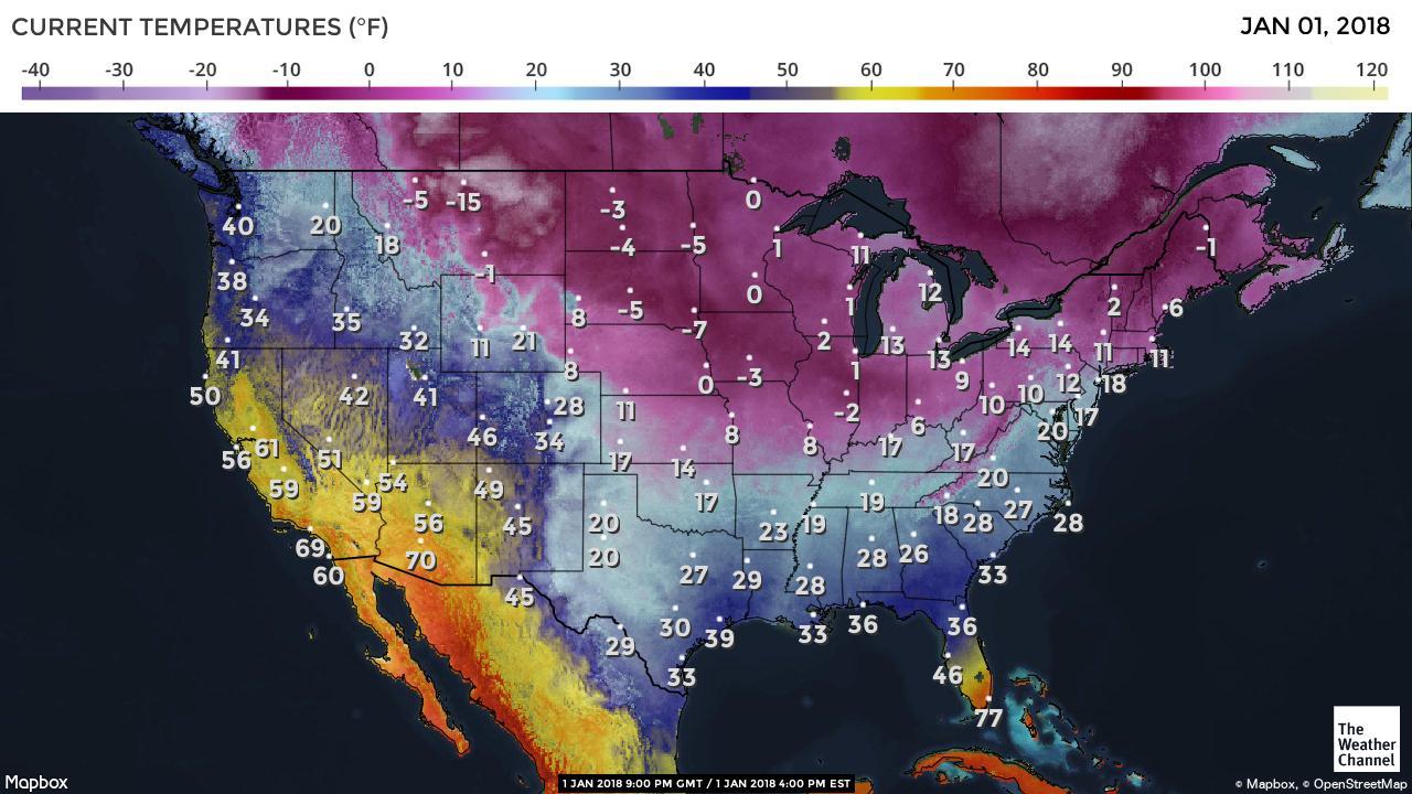 Example 1.1 (Arctic Outbreak) “Arctic air has returned to the Lower 48 and will keep frigid conditions in place across the nation’s northern tier into at least the first few days of 2018”. See details in https://weather.com/forecast/national/news/2017-12-18-arctic-cold-outbreak-forecast-christmas-2017.