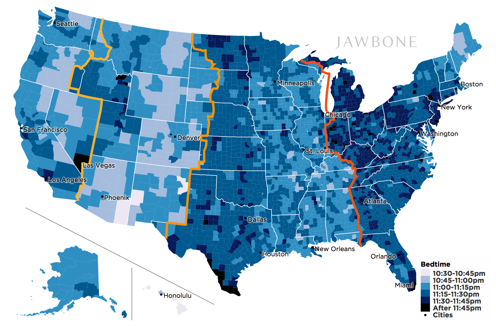 Example 1.2 (Bed time) In which counties people go to bed early? The following plot was copied from https://jawbone.com/blog/circadian-rhythm/.